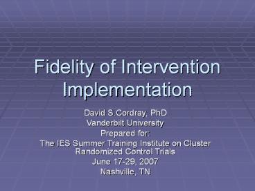 intervention fidelity. - But Dane Schneider (1998) identify 5 aspects