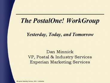 The PostalOne WorkGroup PowerPoint PPT Presentation