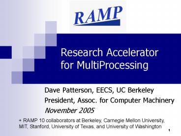 RAMP Participants Arvind (MIT), Krste AsanovĂc