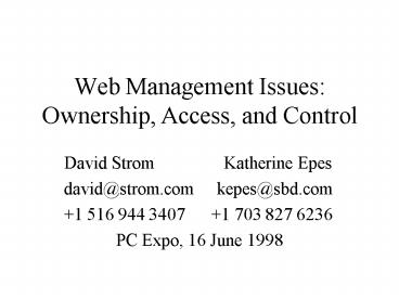 Title: Web Management Issues: Ownership, Access, and Control