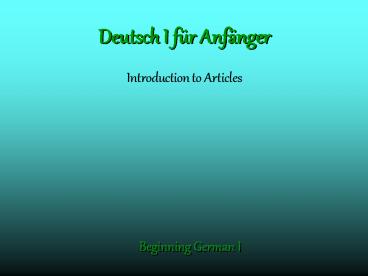 1Deutsch I für Anfänger