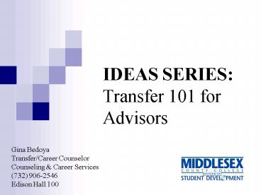 IDEAS SERIES: Transfer 101 for Advisors PowerPoint PPT Presentation
