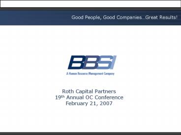 GOOD PEOPLE, GOOD COMPANIES GREAT RESULTS!