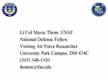 Lt Col Maxie Thom, USAF PowerPoint PPT Presentation