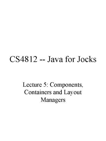 - Lecture 5 Components, Containers and Layout