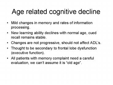 enough to interfere with ADLs. - May represent a pre-demented state.