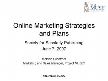 • Marketing and Sales Manager, Project MUSE