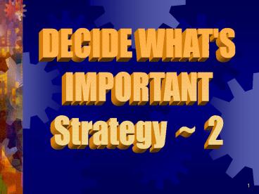 1DECIDE WHAT'S IMPORTANT Strategy 2
