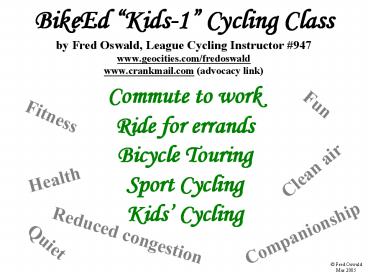 1BikeEd Kids-1 Cycling Class by Fred Oswald, Lea
