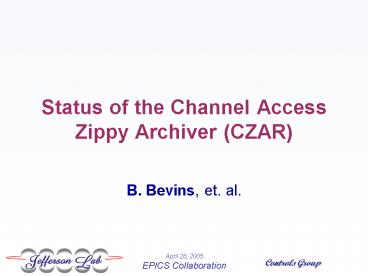 Status of the Channel Access Zippy Archiver CZAR PowerPoint PPT Presentation