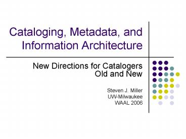 Title: Cataloging, Metadata, and Information Architecture