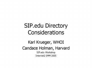 <Notice: Removed> SIP.edu Directory Considerations PowerPoint PPT Presentation