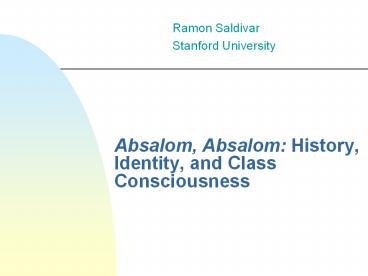 Absalom, Absalom: History, Identity, and Class Consciousness PowerPoint PPT Presentation