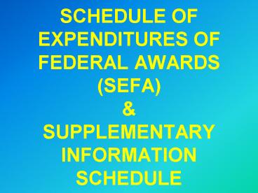 Title: SCHEDULE OF EXPENDITURES OF FEDERAL AWARDS SEFA