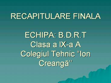 1RECAPITULARE FINALAECHIPA B.D.R.TClasa a lX-a