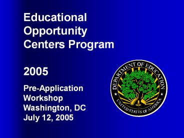 <Notice: Removed> Educational Opportunity Centers FY 2006 Workshops (MS PowerPoint) PowerPoint PPT Presentation