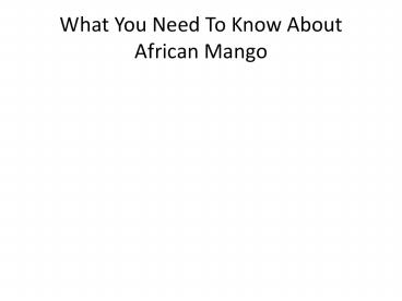 1What You Need To Know About African Mango