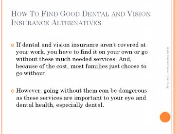 Title: How To Find Good Dental and Vision Insurance Alternatives