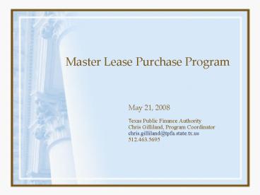 Master Lease Purchase Program - Review your agencys MLPP Resolution for