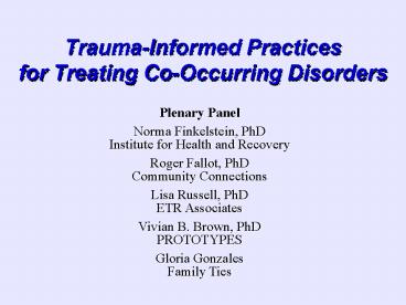 Title: TraumaInformed Practices for Treating CoOccurring Disorders