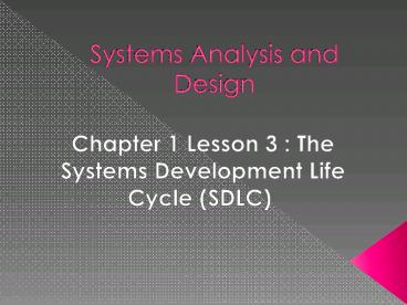 - Chapter 1 Lesson 3 The Systems Development Life