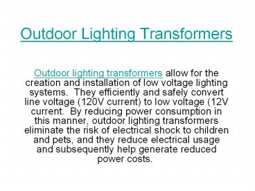 Outdoor Lighting Transformers PowerPoint PPT Presentation