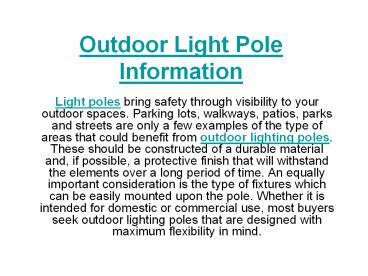 Outdoor Lighting Pole Information PowerPoint PPT Presentation