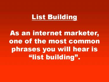 Title: List Building Secrets!!!
