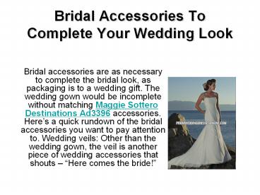 Bridal Accessories To Complete Your Wedding Look PowerPoint PPT Presentation