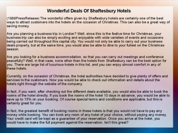 Title: Wonderful Deals Of Shaftesbury Hotels