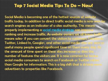 Title: Top 7 Social Media Tips To Do – Now!