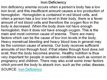 Iron Deficiency Presentation PowerPoint PPT Presentation