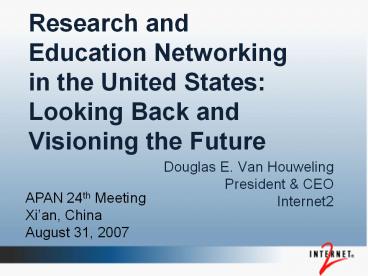 <Notice: Removed> Research and Education Networking in the United States: Looking Back and Visioning the Future PowerPoint PPT Presentation