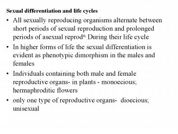 Sexual differentiation and life cycles PowerPoint PPT Presentation
