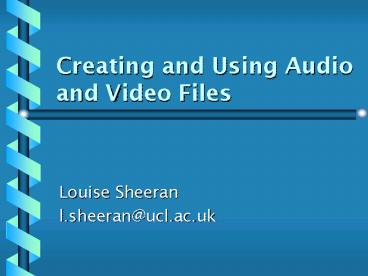 Creating and Using Audio and Video Files PowerPoint PPT Presentation