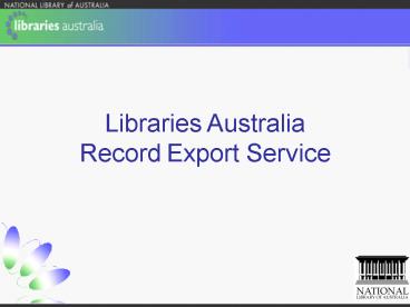 <Notice: Removed> Libraries Australia Record Export Service PowerPoint PPT Presentation