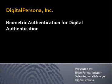 <Notice: Removed> DigitalPersona, Inc. PowerPoint PPT Presentation