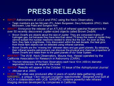 - WHO? Astronomers at UCLA and IPAC using the Keck