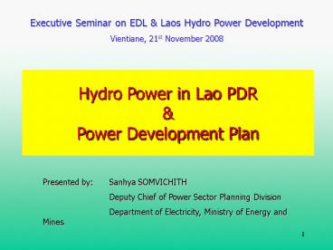 Presented by Sanhya SOMVICHITH Deputy Chief of