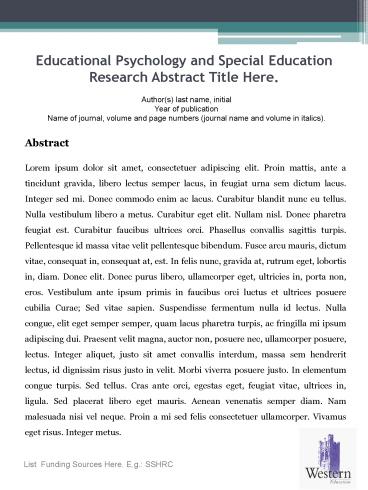 Educational Psychology and Special Education Research Abstract Title Here. PowerPoint PPT Presentation