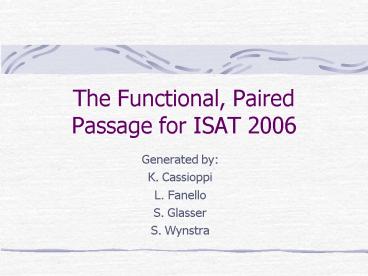 1The Functional, Paired Passage for ISAT 2006