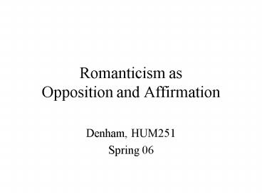 Romanticism as Opposition and Affirmation PowerPoint PPT Presentation