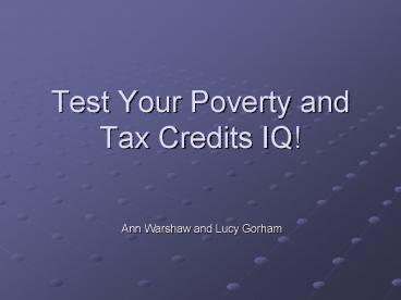 Title: Test Your Poverty and Tax Credits IQ
