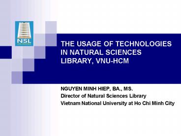 Title: THE USAGE OF TECHNOLOGIES IN NATURAL SCIENCES LIBRARY, VNUHCM