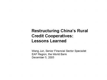 Title: Restructuring Chinas Rural Credit Cooperatives: Lessons Learned