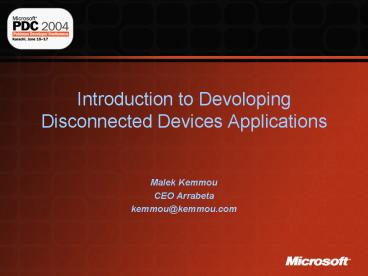 Title: Introduction to Devoloping Disconnected Devices Applications
