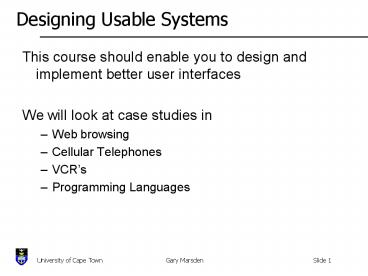 <Notice: Removed> Designing Usable Systems PowerPoint PPT Presentation