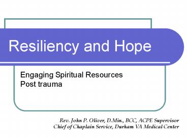 - Rev. John P. Oliver, D.Min., BCC, ACPE Supervisor