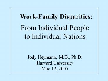 Jody Heymann, M.D., Ph.D. Harvard University May