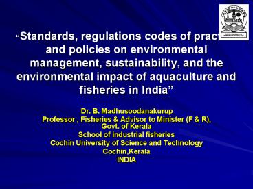 impact on the ecology of the open waters - Dr.B.M.Kurup,INDIA 9-01-2008